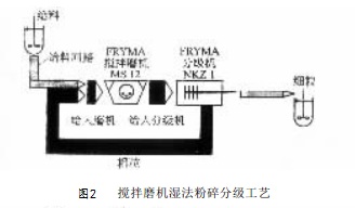 以攪拌磨機(jī)為例,其濕法粉碎工藝如下圖2。