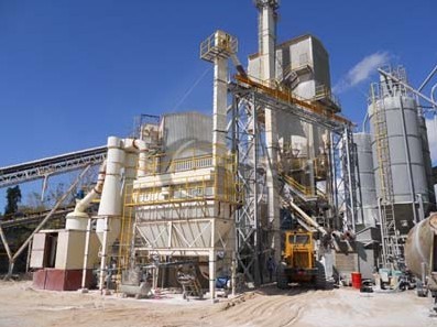 主機(jī)電動機(jī)通過減速器帶動主軸及轉(zhuǎn)盤旋轉(zhuǎn),轉(zhuǎn)盤通過柱銷帶動幾十個環(huán)輥在磨環(huán)滾道內(nèi)滾動并旋轉(zhuǎn)。大塊物料經(jīng)錘式破碎機(jī)破碎成小顆粒后由提升機(jī)送入儲料倉,電磁振動給料機(jī)將物料均勻地送到轉(zhuǎn)盤上部的散料盤上,物料在離心力的作用下散向圓周邊,并落入磨環(huán)的滾道內(nèi)被環(huán)輥沖壓、磙碾、研磨而粉碎,物料經(jīng)層粉碎后落入第二層及第三層,高壓離心風(fēng)機(jī)的抽吸作用將外部空氣吸入機(jī)內(nèi),并將粉碎后的物料帶入選粉機(jī)內(nèi)。選粉機(jī)內(nèi)旋轉(zhuǎn)的渦輪使粗顆粒物料回落重磨,細(xì)粉則隨氣流進(jìn)入旋風(fēng)集粉器并由其下部的卸料閥排出即為成品,而帶有少量細(xì)粉塵的氣流則經(jīng)過脈沖除塵器凈化后通過風(fēng)機(jī)和消聲器排出。